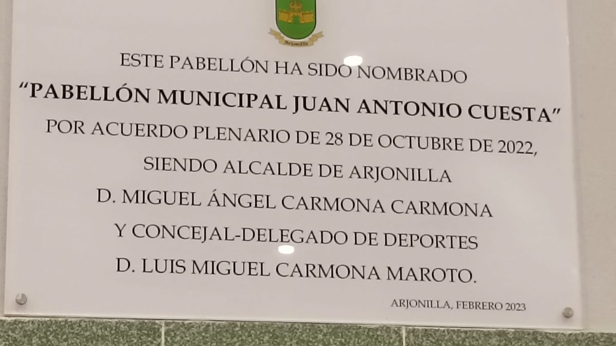 En el pueblo jienense el Pabellón Municipal de Arjonilla a partir de ahora se llamará «Pabellón Municipal Juan Antonio Cuesta». Así lo han decidido por acuerdo mayoritario del 28 de octubre de 2022 siendo alcalde del municipio D. Miguel Ángel Carmona Carmona, y concejal D. Luis Miguel Carmona Maroto.