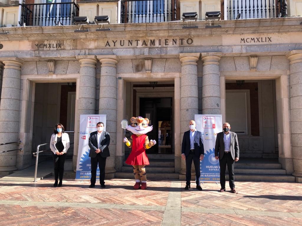 La mascota estuvo junto al comité organizador en esta importante ceremonia de promoción del Mundial. Además del mencionado comité también se presentaron los distintos clubes de Huelva junto a varios de sus deportistas y el centro de tecnificación de deportistas del «Bádminton sin barreras». Asimismo, los portavoces de los principales grupos municipales del ayuntamiento también acudieron a este evento mañanero.