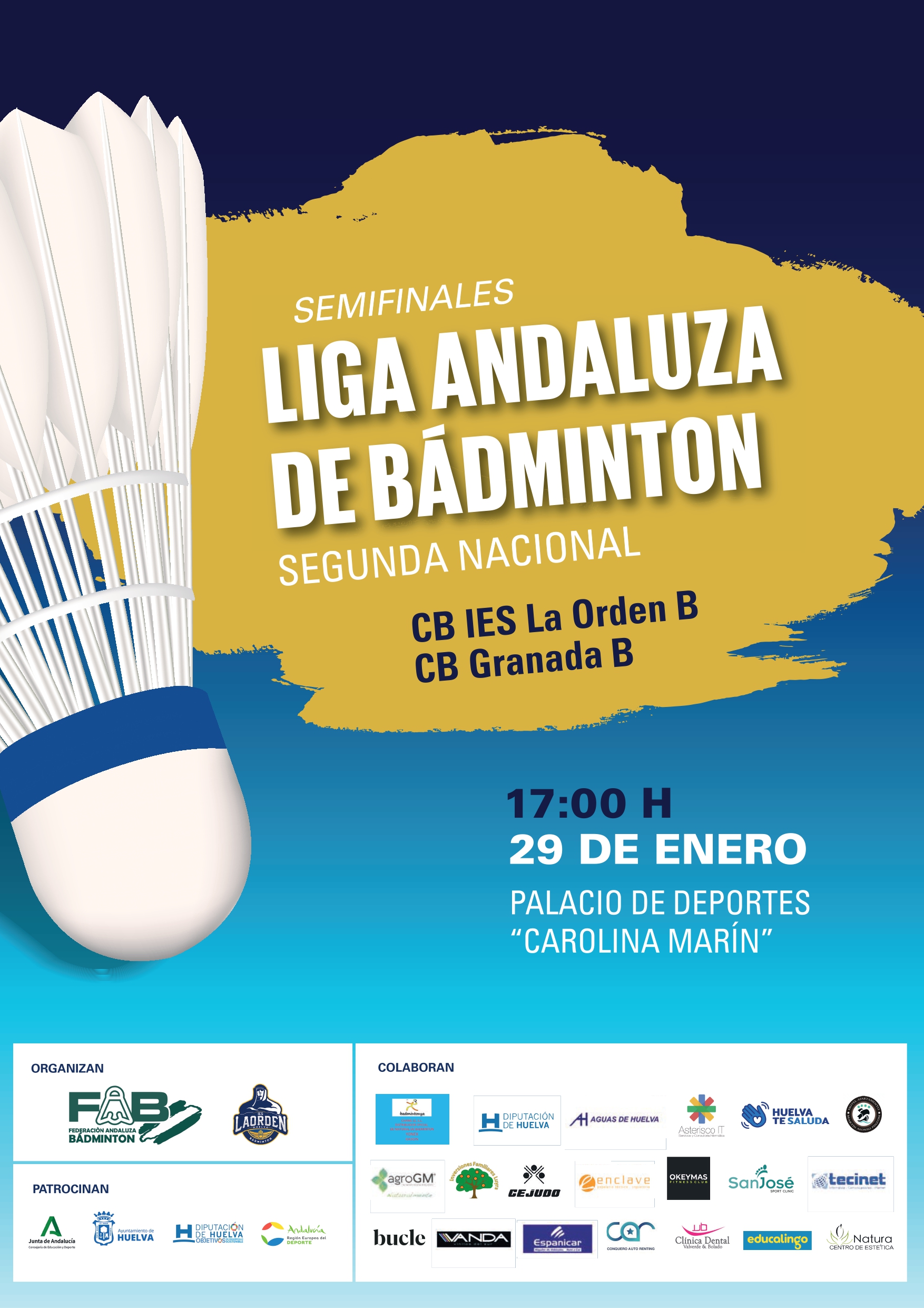 La ida de la semifinales malagueña tendrá lugar el 29 de enero en la Ciudad Deportiva Carranque (Málaga) a las 11:30, mientras que el choque entre el conjunto onubense y el granadino se disputará en al Palacio de Deportes Carolina Marín a las 17:00 del mismo día.